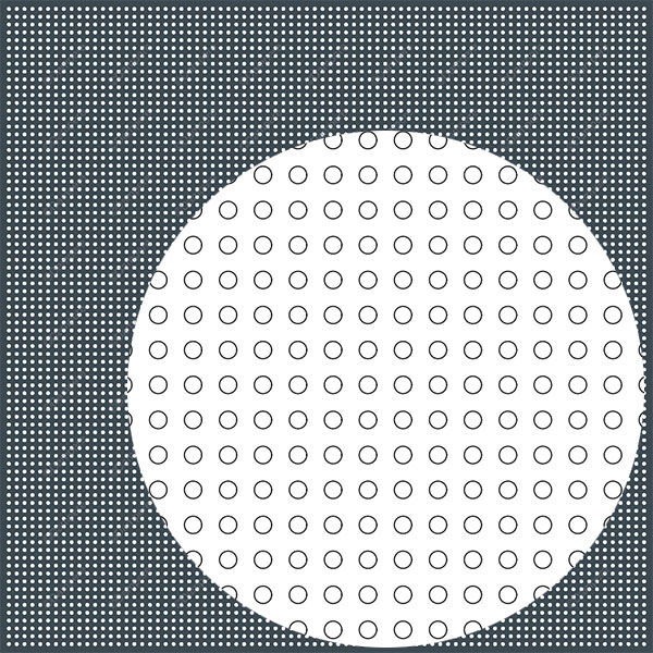 La tôle perforée R6U12 Mallene propose une écriture fine et régulière : des ronds de Ø 6 mm agencés en alignement orthogonal sur un pas constant de 12 mm. Sous la désignation normalisée Rg6-12, cette géométrie de perfo régulière délivre environ 20 % de vide, un niveau attendu lorsque l’objectif est d’assurer un passage d’air fonctionnel, une transmission lumineuse maîtrisée et un rendu visuel homogène. La trame de perforation en ligne produit une répartition directionnelle des ouvertures : les ombres se dessinent en quadrillage régulier, avec un effet linéaire discret ; à distance, la surface s’apparente à un voile métallique continu et apaisé.