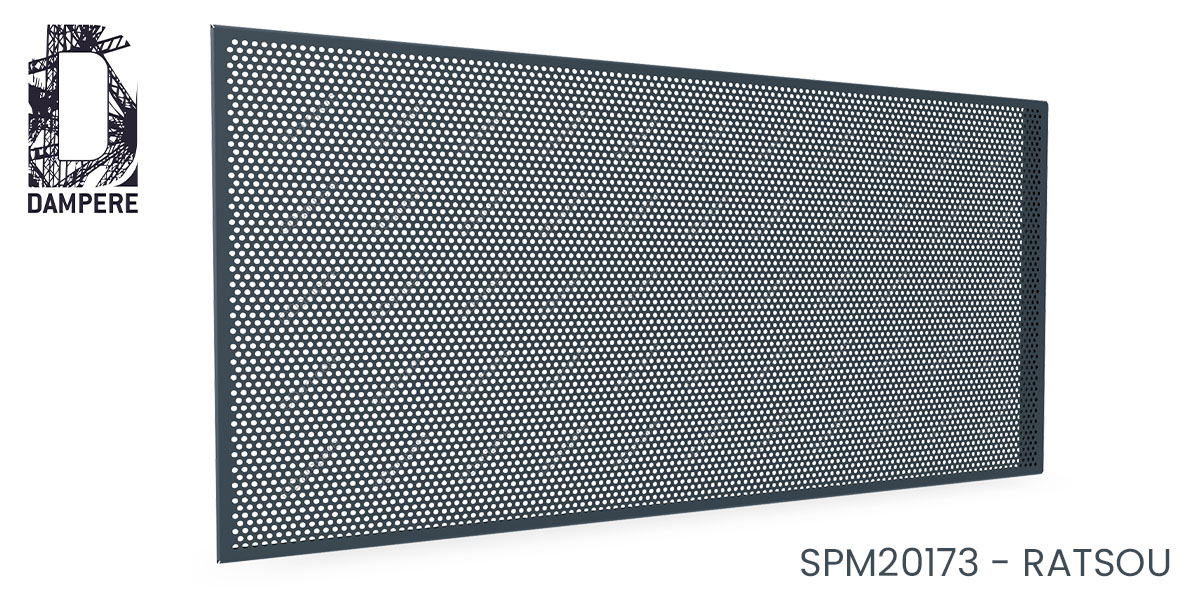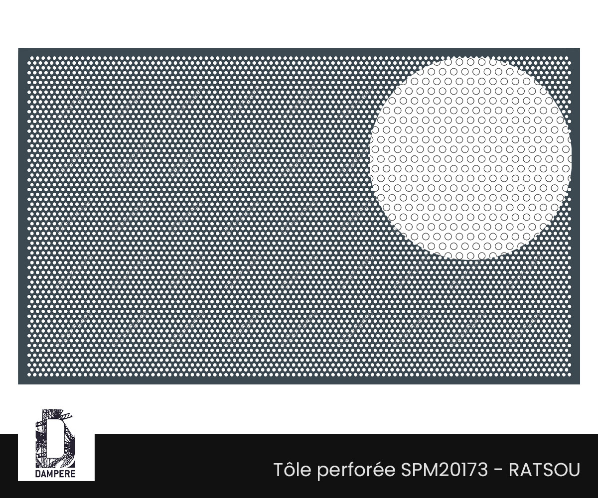 Son motif perforé rond serré confère à la tôle un aspect technique et soigné.
