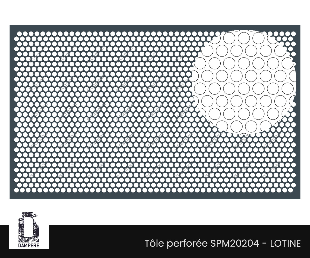 La tôle perforée R16T20 – Lotine incarne un motif à trous ronds régulier de 16 mm, disposés avec précision selon une trame en quinconce à 60°, avec un entraxe précis de 20 mm de centre à centre. Ce schéma géométrique régulier constitue le motif Rv16-20, offrant une transparence de 58 %, soit l’un des taux d’ouverture les plus élevés du catalogue des tôles perforées standards. Grâce à ses grands trous ronds, la tôle perforée R16T20 Lotine combine effet de légèreté visuelle, fort passage d’air et de lumière, et une grande présence décorative, tout en conservant une structure mécanique équilibrée pour des usages nécessitant une protection techniques. La disposition en quinconce à 60°, par opposition à une grille en ligne droite, permet une diffusion plus fluide des charges mécaniques, notamment sur des panneaux de grandes tailles, tout en générant une trame visuelle plus dynamique et esthétique. Ce motif évite l’effet de « bande » verticale, souvent perçu comme trop rigide en décoration, pour offrir une perception de moucharabieh fluide et homogène. L’effet visuel de la tôle perforée R16T20 est saisissant : - Lors d’une observation de près, les grands cercles réguliers créent une texture marquée et contemporaine, jouant avec la lumière, les reflets et les ombres. - De loin, la perfo R16T20 devient un voile métallique semi-opaque, parfait pour des projets nécessitant transparence, filtre visuel dynamique selon l’angle de vue. Avec ses atouts, la tôle perforée R16T20 – Lotine s’applique facilement sur : - Façades ajourées cherchant un effet de moucharabieh géométrique, un effet graphique notable, apportant lumière naturelle, esthétique et ombrage passif. - Clôtures urbaines ou périmétriques, pour délimiter sans enfermer en ville. - Caches techniques ou grilles de ventilation, où la circulation d’air est essentielle. - Garde-corps fonctionnels, en résidentiel ou tertiaire (avec précautions sur la rigidité). Recommandation technique : du fait de son fort taux d’ouverture (58 %), la tôle perforée R16T20 Lotine possède moins de matière résiduelle, ce qui peut réduire sa résistance aux chocs ou à la flexion sur de grandes portées. Il est recommandé de l’utiliser dans un cadre rigide ou de prévoir un système de pliage latéral sur les 4 côtés de la tôles pour renforcer sa tenue structurelle. Prix indicatif de la tôle perforée R16T20 se situe entre 45 €/m² et 65 €/m² pour des quantités de 100 m² (hors finition) en Acier galvanisé, ép1,5 mm en dimensions standard de plaques 1000 x 2000 mm. Le motif perforé Rv16-20 – Lotine représente une bonne option pour les projets visuellement expressifs, qui exigent un haut degré de ventilation ou de légèreté esthétique, tout en acceptant un niveau de rigidité modéré. Pour les projets nécessitant plus de robustesse à prix réduit, une alternative comme la tôle R15T20 peut être envisagée, avec un équilibre entre ouverture et une tenue mécanique mieux répartie.